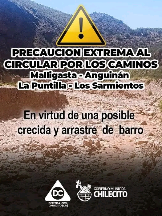 La Dirección de Defensa Civil informa que, desde la siesta de este jueves, se espera una importante crecida del Río Amarillo y proyección hacia el Río Los Sarmientos, con posible arrastre de barro.
