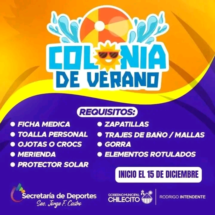 La Secretaría de Deportes informa a toda la comunidad que el inicio de la nueva temporada será el día 15 de Diciembre, en el horario de 9 a 12:30 hs.
