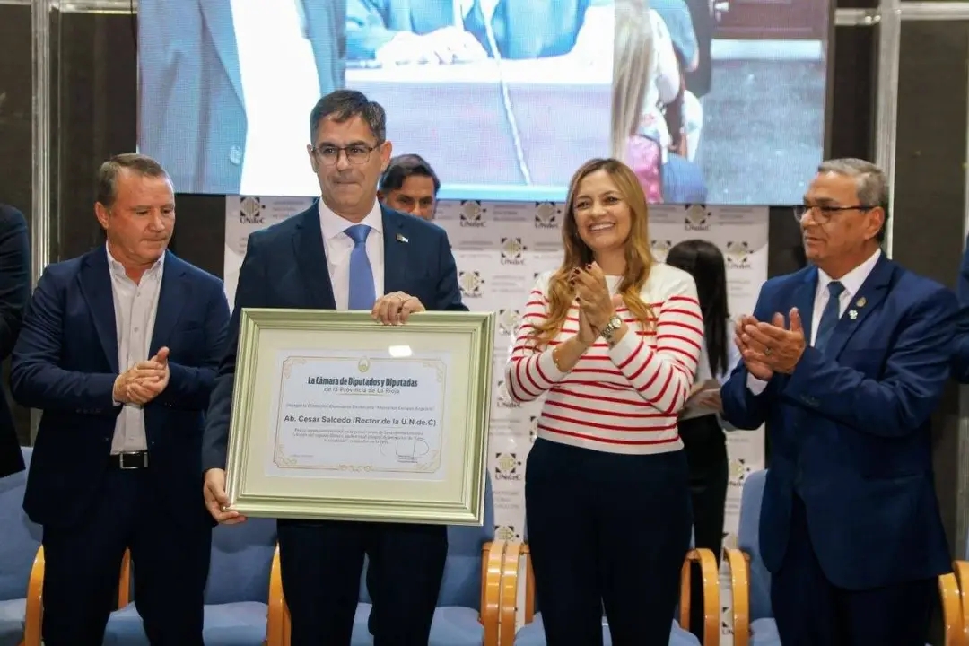 Con profundo sentido de memoria y compromiso democrático, el intendente Rodrigo Brizuela y Doria, junto a la vicegobernadora Teresita Madera, y demás autoridades departamentales, participaron del reconocimiento otorgado en la Universidad Nacional de Chilecito, en el marco del proyecto “Monseñor Enrique Angelelli” impulsado por la Legislatura de La Rioja.