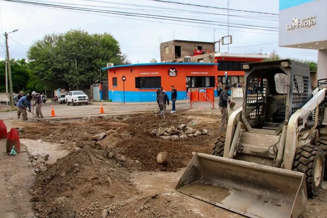 Continúan las tareas de mejoramiento de calzada en la intersección de 19 de Febrero y Roque Lanús, una obra clave para optimizar la circulación y la seguridad vial en el sector.